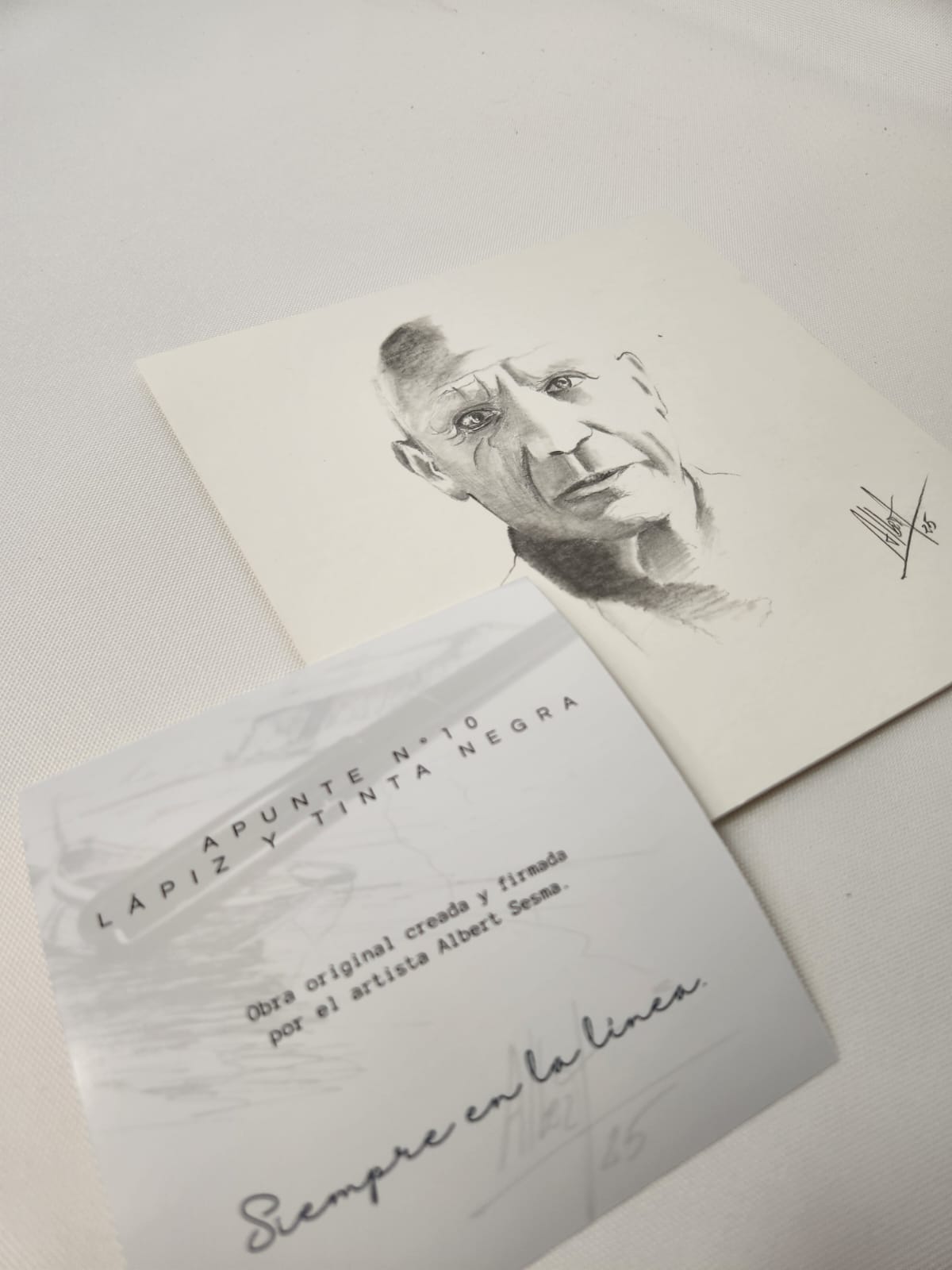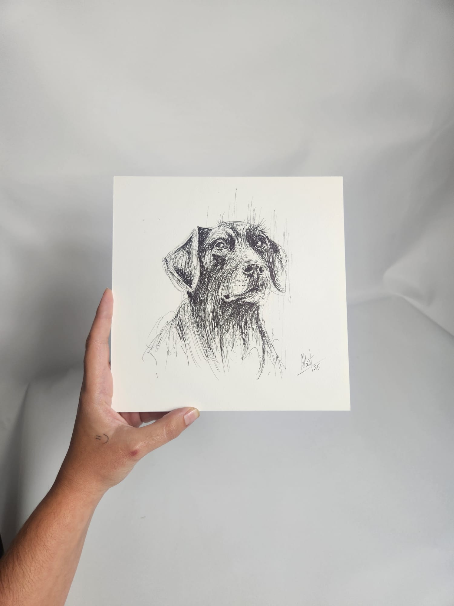 Trabajamos a partir de una foto y de tu historia, y transformamos ese recuerdo en un apunte original de 20×20, firmado y enviado desde mi estudio.